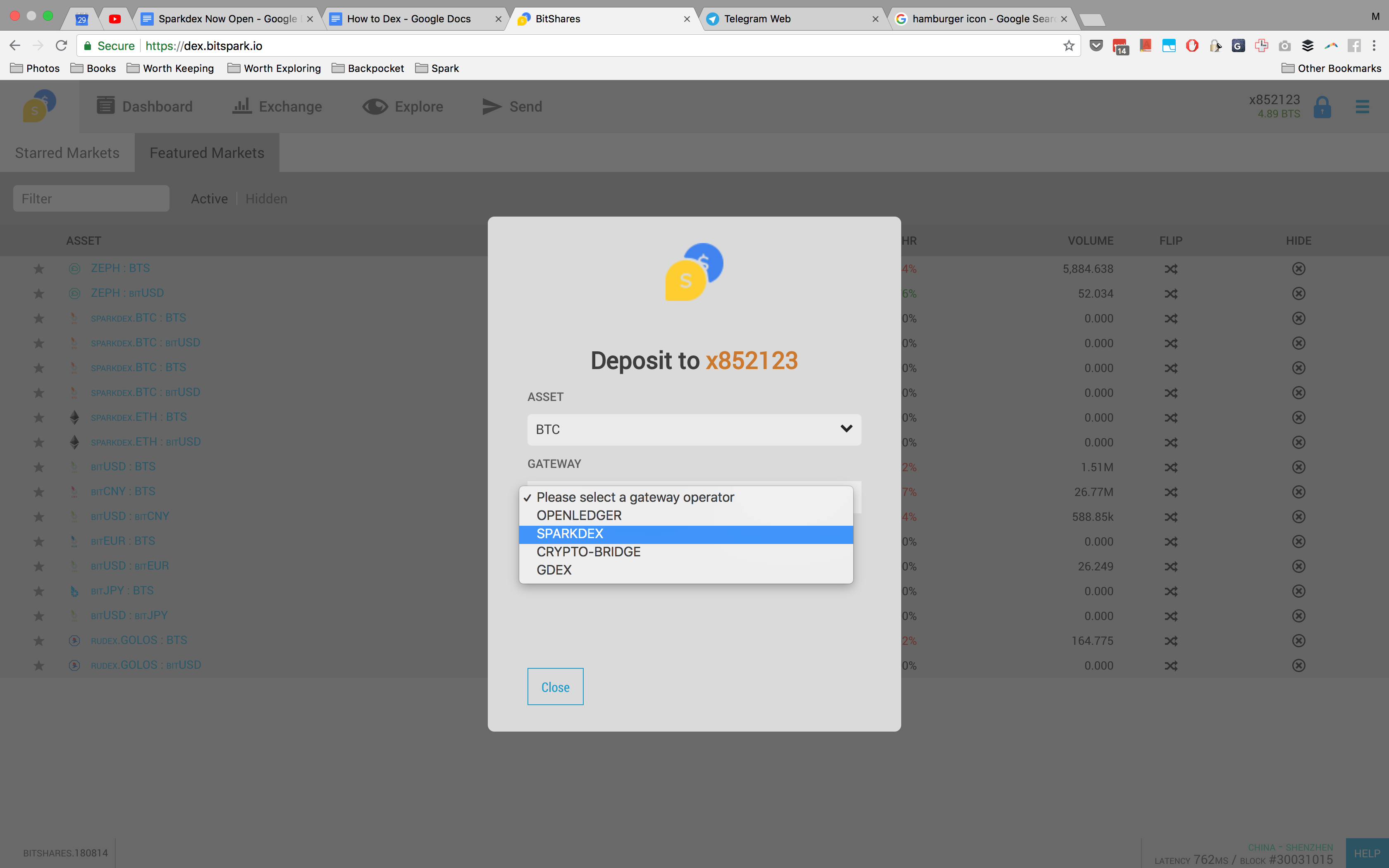 Gateway field will then appear. When you drop this list you will see some providers. Click SPARKDEX to deposit btc or eth. Sparkdex is not responsible for other gateways. Use at your own risk.