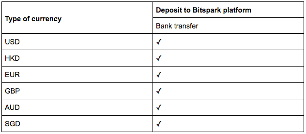 The Bitspark web platform is intuitive and will show you options as you proceed to deposit your funds.